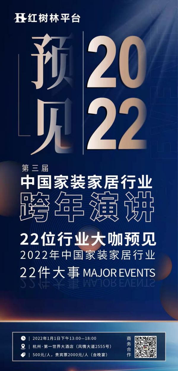 预见2022,1月1日,红树林平台创始人许瑞联合网易家居,邀请了22位行业大咖对2022年进行行业分析,为全国的装企同行们预测2022年的挑战与机遇,分享应对策略,共享行业先机。
