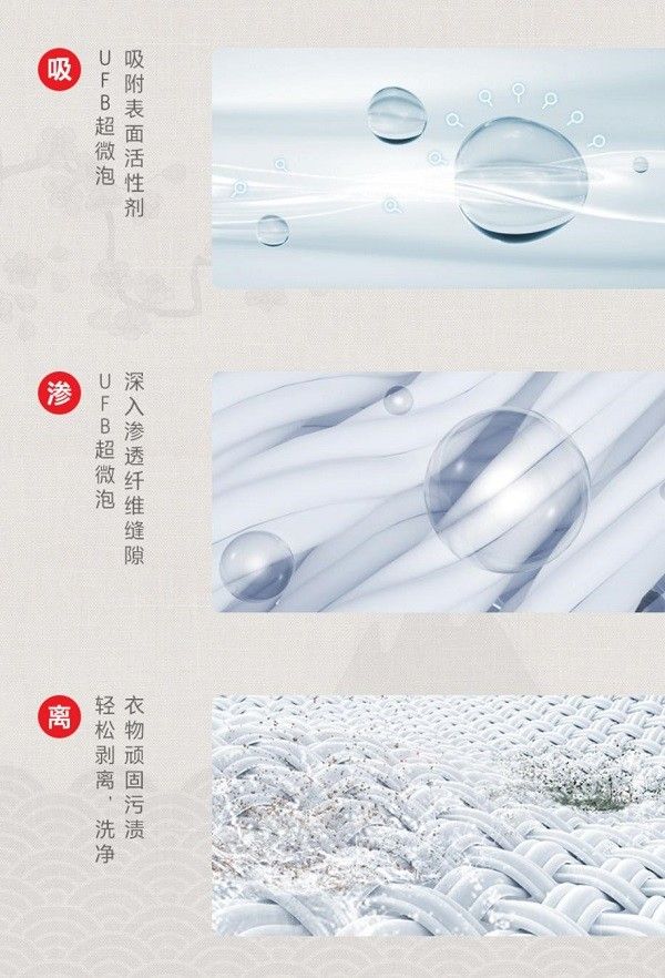 市面上的洗烘一体机并不少,为什么笔者更看好这款产品呢?因为在洗净技术方面,东芝X9热泵洗烘一体拥有独家的UFB超微净泡洗技术。洗衣时,该机滚筒内的UFB纳米泡引擎会产生亿万微气泡。这些气泡的表面能够吸附洗涤剂的活性成分,并更轻易地渗透到衣物深层的纤维之中,更轻松的将衣物内部的顽固污渍剥离出来。同时,相较市面上的同级别机型,东芝X9热泵洗烘一体的滚筒容量也更大,可一次性清洗12KG的衣物。