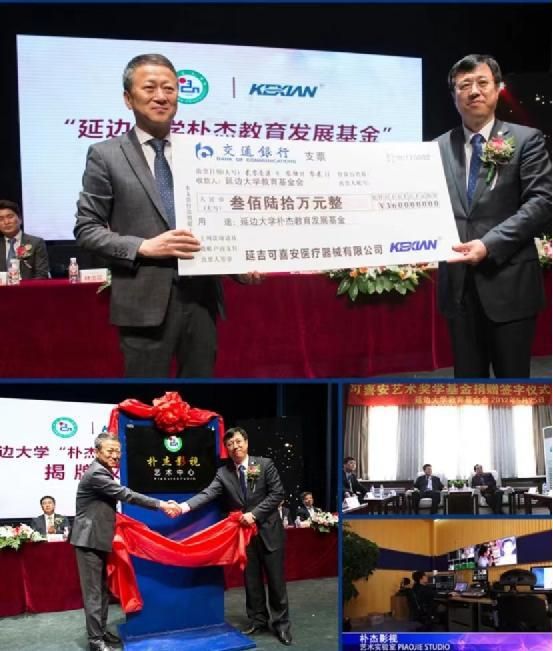 可喜安成立17年,一直致力于大众健康,除了努力为大家带去身体健康外,还非常关注大众的精神健康。艺术是我们日常生活中不可或缺的一部分,它能在潜移默化中滋养我们的身心、愉悦我们的精神…为了鼓励学生们创作优秀的艺术作品,为了支持孩子们的艺术梦想,为了给学生们提供更好的学习和创作环境 朴杰董事长先后在延边大学捐赠成立“可喜安艺术奖学金”、“朴杰影视艺术中心”、“延边大学朴杰教育发展基金”。