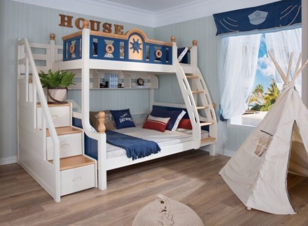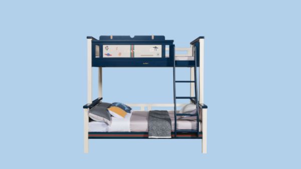 采用珍珠白和可可柚为主色,深海蓝作为点缀,护栏采用纯手工打磨的船舵造型,外观富有童趣。希望孩子在成长的路上不畏艰难、勇敢尝试,努力实现自己的梦想。