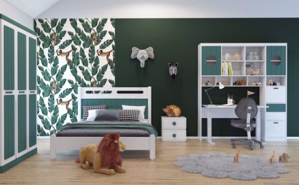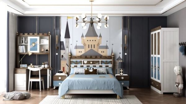 搭配充满童趣的星际团,结合自然的松树造型,将高雅气质与童趣自然融合,满足储物空间的同时为孩子打造专属的梦幻王国。