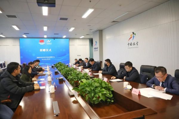 国家体育总局冬季运动管理中心在综合训练馆为大自然床垫举行授牌仪式现场