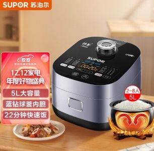 苏泊尔5L小快智能电饭煲,作为电饭煲金奖获得者,可谓将煮饭这一功能精细化到了极致。全新内胆升级,煮饭不仅保证口感,还将时间缩短一半,22分钟就能吃到香弹柴火饭;不同米种,提供不同煮饭方案,特设温控曲线,煮饭又快又好;16大烹饪菜单,一锅多用,纵享烹饪乐趣;风冷塔黑科技防溢沸煮,卫生方便容易清洗;蓝钻内胆图层不脱落,煮饭不粘锅,汤粥不糊底,简直就是家庭必备煮饭神器。
