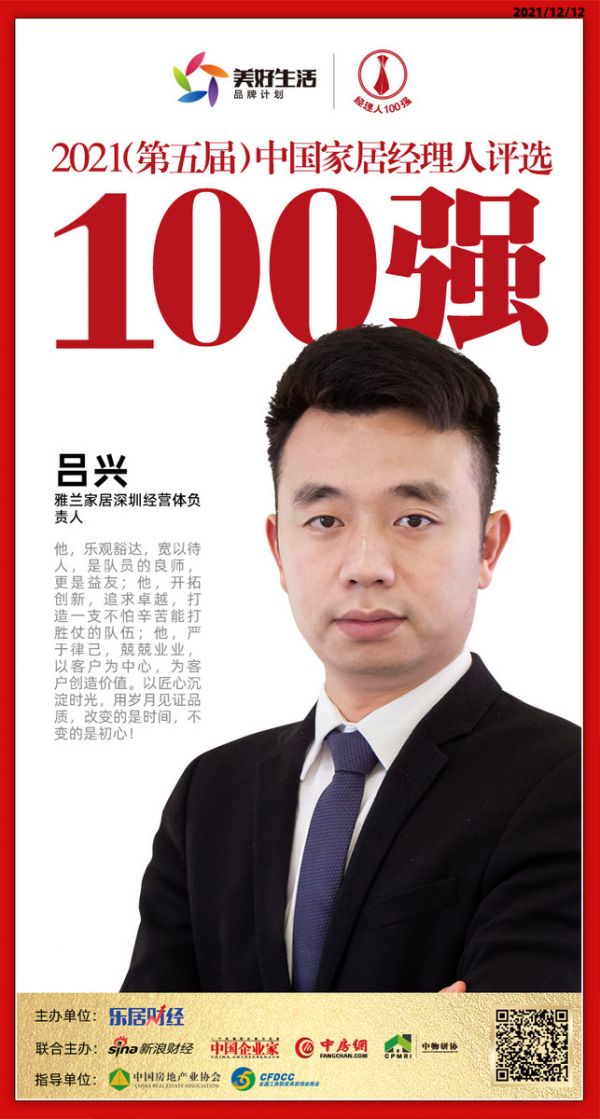 快讯:雅兰家居吕兴荣获“2021中国地产经理人100强”
