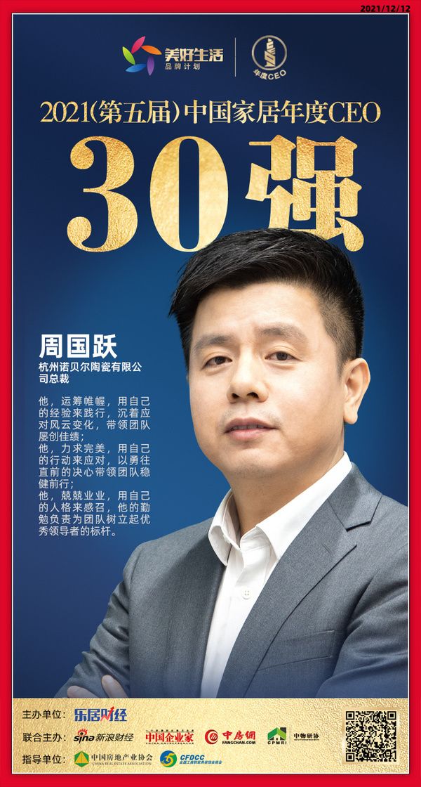 快讯:诺贝尔陶瓷周国跃荣获“2021中国家居年度CEO30强”