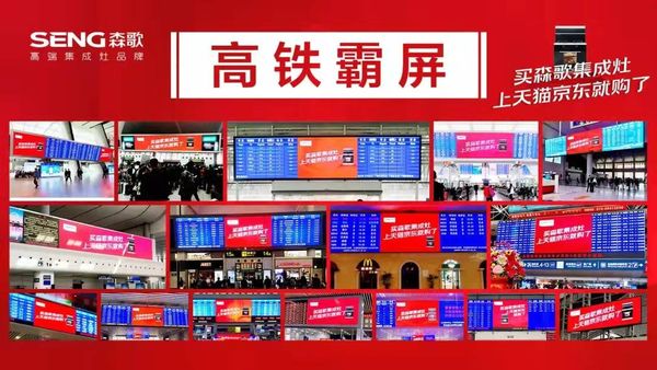 可以明显看到,近年来森歌的营销方式变得多元立体,一个立体多位的营销矩阵被建立起来。线下高铁+高速+户外广告等传统渠道持续密集投放,登录央视传递高品质厨房生活理念,品牌声量不断放大。