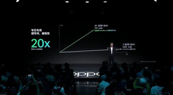 其中马里亚纳 MariSilicon X运行自研的AI降噪算法时,能够以4K规格,实现40fps的处理速度,比此前Find X3 Pro的通用NPU的速度提升了近20倍性能跃升,并且还降低超过50%的功耗,性能变高的同时还实现了能效下降。