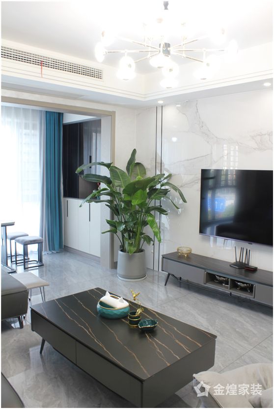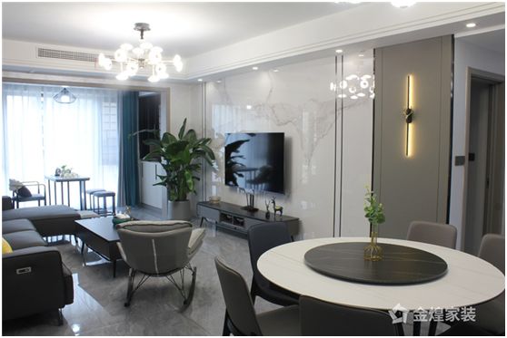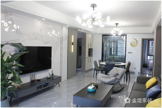 金煌家装 | 130㎡现代轻奢风,大理石与木饰面结合演绎时尚生活!