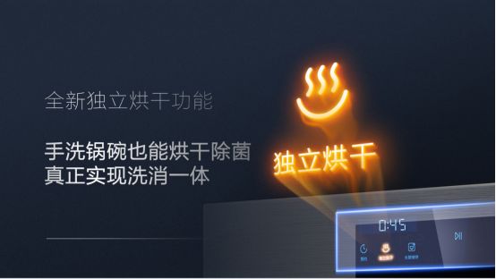 不同于市面上打着洗、消、烘、储的产品,却只有水洗除菌烘干功能,根本不具备单独烘干消毒效果,老板电器洗消一体机光焱 S1将单一厨电的功能创新整合,而且单洗、洗烘以及单独烘干之间自由切换,大幅提升用户使用体验,更节省了厨房空间。