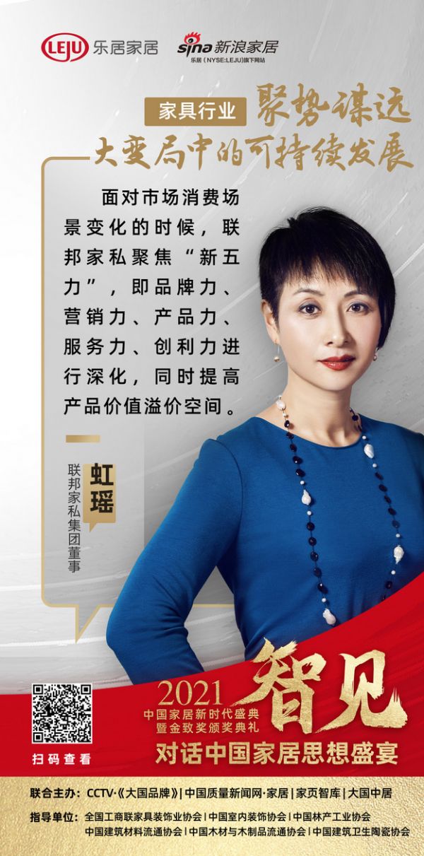 联邦家私集团董事虹瑶表示,面对市场消费场景的变化,联邦家私聚焦“新五力”,即品牌力、营销力、产品力、服务力、创立力五个方面进行深化,同时提高产品价值溢价空间。近年来,面对消费主力年轻化,联邦家私坚持走“新国潮”路线。在她看来,“新国潮”并非意味着不变,产品上也不是要带有严重的中式符号。联邦要做的不是“蹭”热点,而是要走原创设计方向,打造中国人自己的生活方式。