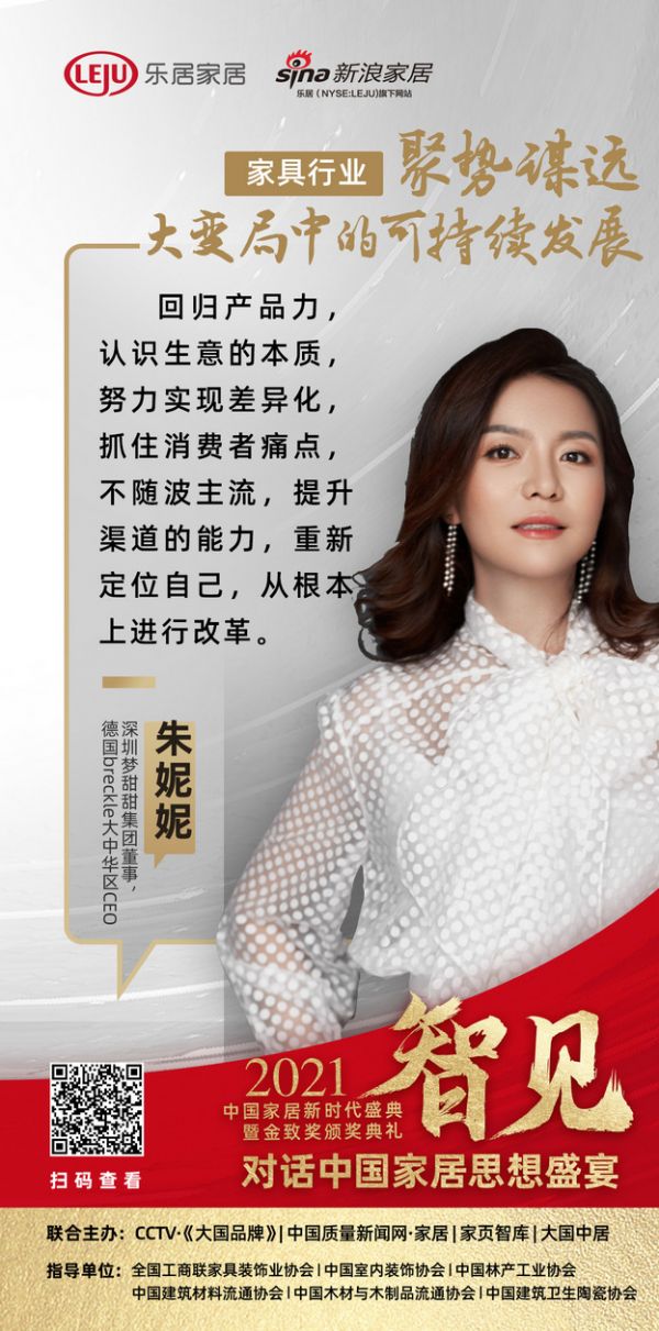 由乐居家居、新浪家居主办,CCTV·大国品牌、中国质量新闻网·家居、家页传媒、大国中居协办,全国工商联家具装饰业协会、中国室内装饰协会、中国林产工业协会、中国建筑材料流通协会、中国木材与木制品流通协会、中国建筑卫生陶瓷协会、广东省家居业联合会共同指导的《智见·2021中国家居新时代盛典暨金致奖颁奖典礼》——『对话中国家居思想盛宴』于12月13日正式开启。