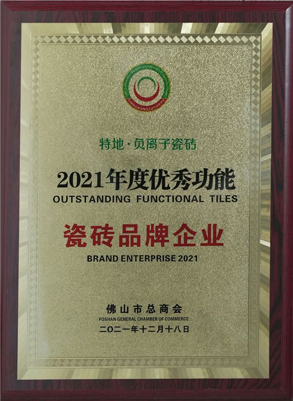 12月18日,“2021年第二十届中国(佛山)民营陶瓷卫浴企业家年会”在佛山隆重举办,会上进行了“十大建陶风云企业”、“十大建陶明星企业”、“十大卫浴品牌企业”、“优秀建陶卫浴品牌策划”等奖项颁奖典礼,特地·负离子瓷砖一举斩获“2021年度建陶十大明星企业”、“ 2021年度优秀功能瓷砖品牌”两项大奖。
