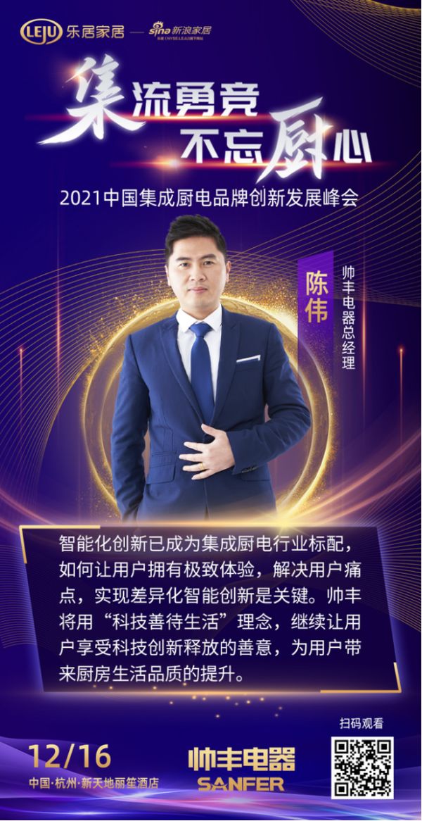 在日前结束的新浪家居2021中国集成厨电品牌创新发展峰会的论坛上,针对产品如何真正跳出同质化藩篱,品牌又如何起到助力等问题,帅丰电器总经理陈伟作为嘉宾受邀,进行了自己的一番阐述。