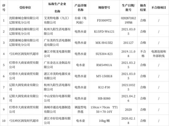 家电快讯|辽宁省辽阳市抽查10批次家用电器 不合格1批次