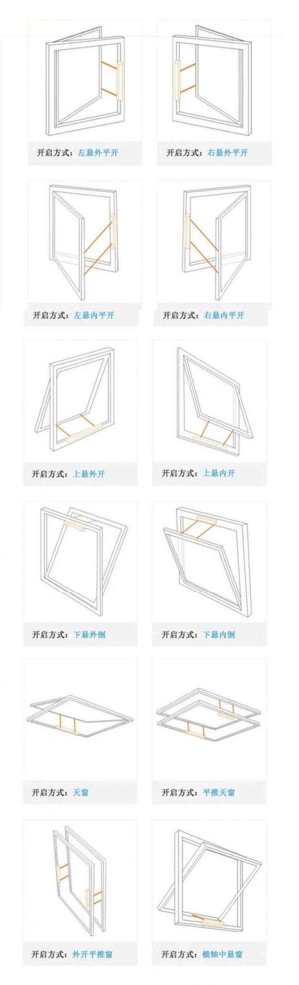 外平开推窗 横轴中悬窗