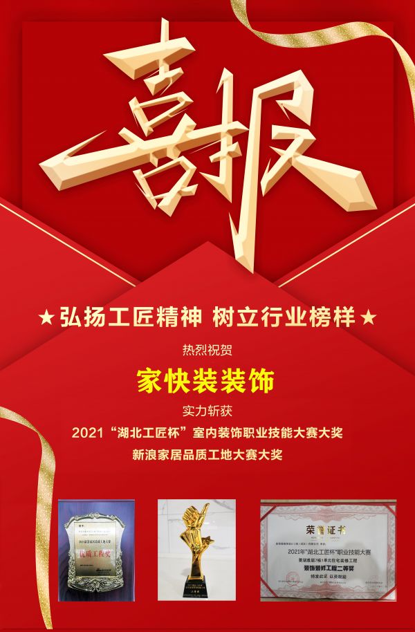 喜报|家快装装饰荣获“湖北工匠杯”室内装饰职业技能竞赛大奖