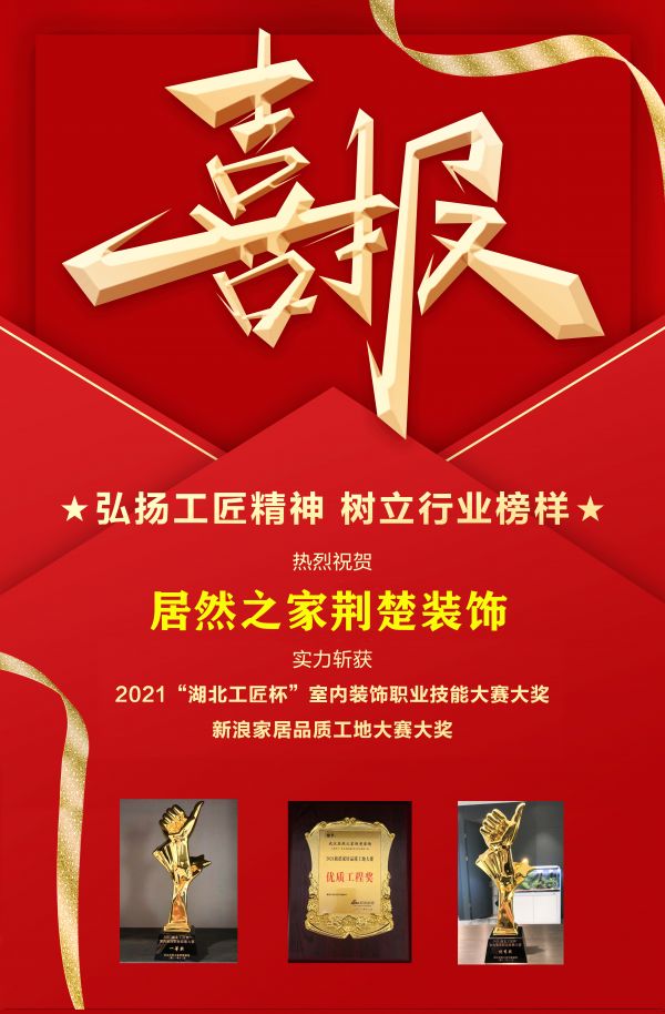 居然之家荆楚装饰,在大赛中奋力挑战,勇于争锋,展现出超高的工艺技能和管理服务水平,特热烈祝贺居然装饰,斩获:
