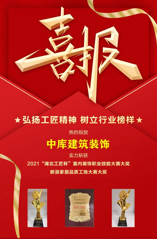 湖北中库建筑装饰工程有限公司,在大赛中奋力挑战,勇于争锋,展现出超高的工艺技能和管理服务水平,特热烈祝贺中库建筑装饰,斩获: