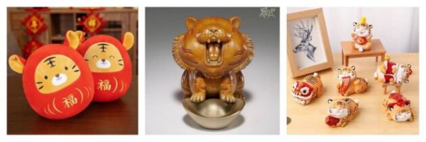 新年少不了要走亲访友,各式各样的可爱小虎,绝对是伴手礼佳品。巧心师的虎公仔抱枕使用经典达摩造型;色豆的虎娃娃和铜师傅的开心小虎身形圆润,萌趣满满;还有安提诺伯的虎虎生威系列盲盒,前程似箭、招财进宝、好运连连……快来试试看会抽中哪只小老虎吧!