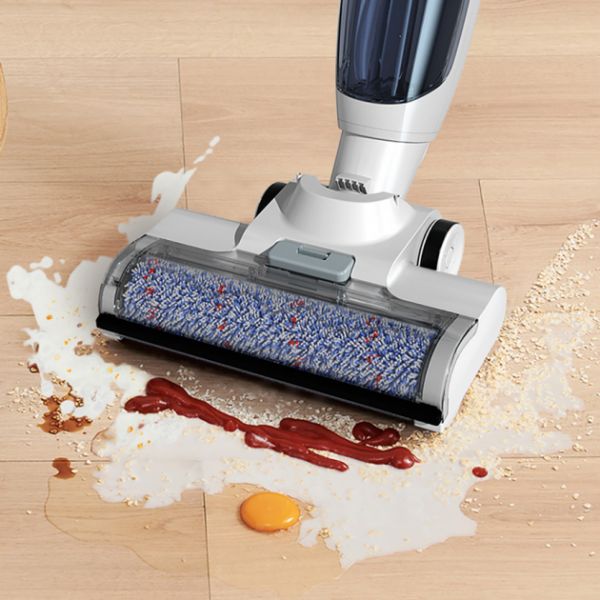 在日常清扫的过程中,从厨房到卫生间,从客厅到房间,经常会碰到污垢多、难清洁的问题。美菱洗地机配置了标准/强力两种模式,针对干湿垃圾(毛发、泡面、酱油等等)深度清洁微尘及地面小颗粒垃圾,轻污轻刷,重污重擦,干湿通吃,一遍就干净。同时,高转速电机每分钟的转速还可以达到2000转,相当于每分钟擦地约2000次,再顽固的污渍,也可高效清除。