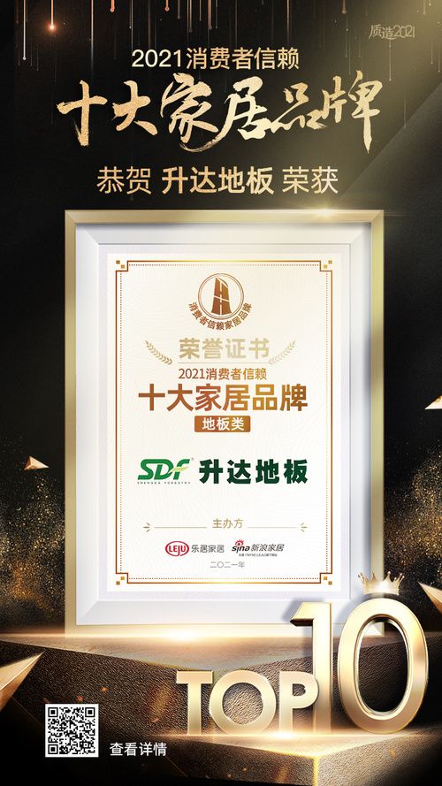 2021年11月,升达地板获得「2021消费者信赖十大地板品牌」荣誉,标志着升达地板品牌进一步收获了消费者的认可。12月,新时代升达地板公司董事长赵毅明出席智见·2021中国家居新时代盛典,分享了升达地板在“地墙一体化”领域做出的尝试与实践。