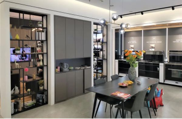颜色是一种奇特的存在。它会用饱满的情绪调动人的感知,或张扬热烈,或含蓄内敛...…而以代表活力与洒脱的神仙色松石绿作为产品搭配橱柜区的主色,无疑在整体风格沉稳典雅的店内点缀了一道亮丽的风景线。提升格调品味的同时让人眼前一亮,打造绝佳的入店印象。