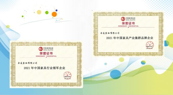 (全友荣获“2021年中国家居行业领军企业”、“2021年家具产业集群品牌企业”两项殊荣)
