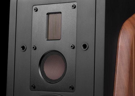 M300MKII箱体外部由黑色哑光漆面包裹,两侧搭配豪华木纹侧板,这一设计无不透露着惠威的独到审美和个性灵感,充满古朴雅致的格调。在保证美观的同时,也有效减少了箱体谐振对声音的影响,让音箱结构更单纯、声音的质量密度更好,以释放出至纯至净的上乘音质。