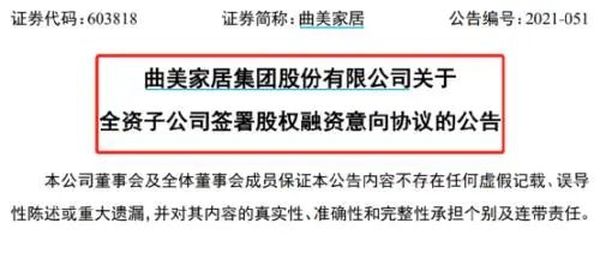 新浪定制频道讯12月29日晚间,曲美家居发布《关于全资子公司签署股权融资意向协议的公告》。公告称,公司就全资子公司Qumei Runto S.àr.l.股权融资事项与珠海高瓴德祐投资管理有限公司和银梯咨询顾问(北京)有限公司分别签署了《曲美家居战略合作之投资意向书》。具体来看,高瓴投资和银梯咨询拟以向Qumei Runto增资或受让老股的方式分别投资 2 亿元人民币和 2500万美元。