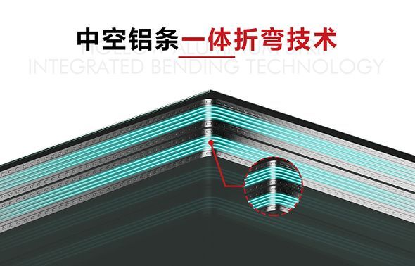 H-3断桥平开窗采用中空铝条一体折弯技术,整体折弯,同时在铝边条内装有干燥剂,不仅提高了门窗的气密性,还有效解决潮湿天气,门窗起雾等问题。