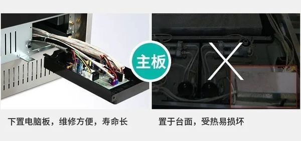 许多品牌将电脑板放在集成灶台面下方,热度高、没有防护措施,很容易老化短路。维修的时候需要将机器从橱柜里面拉出拆卸台面,非常复杂。