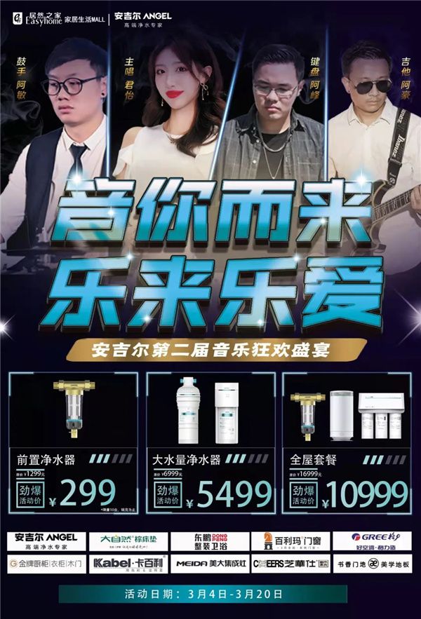新浪家居讯 3月4-20日,安吉尔第二届音乐狂欢盛宴,豪礼送不停。