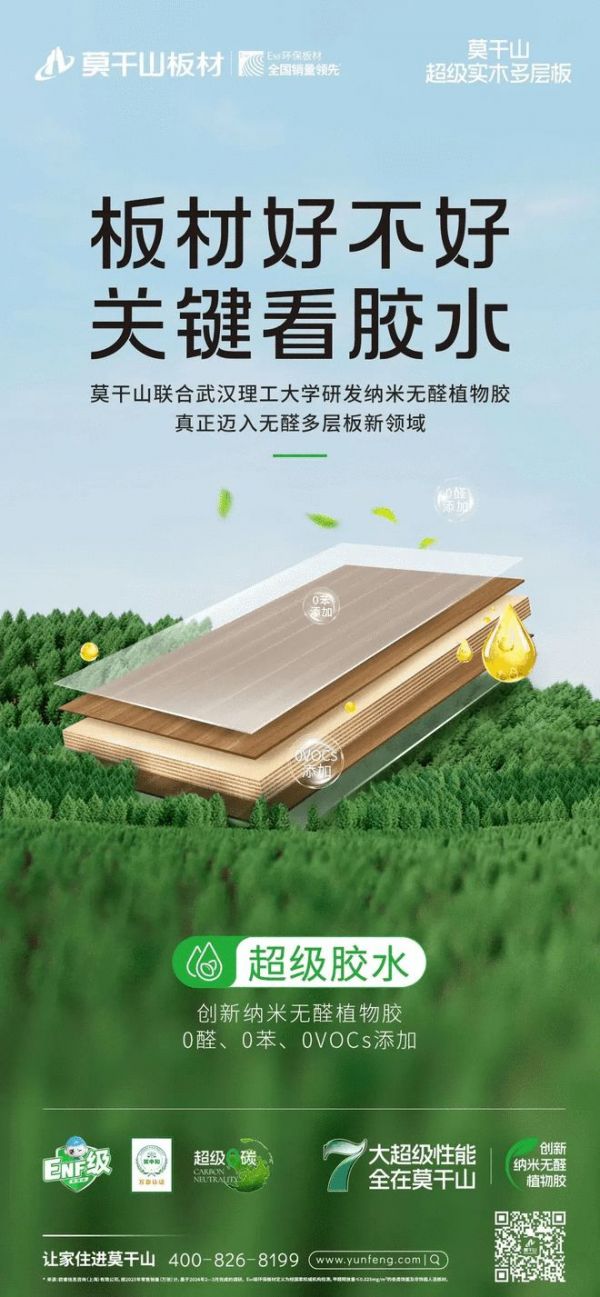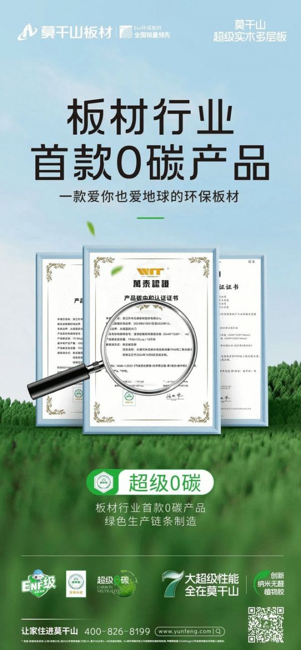 从E1到E0,再到ENF级,乃至HENF级、以及即将推出的TOVC气味标准,这是中国人造板行业的环保历史,是莫干山品牌的发展史,更是一部推动乃至引领中国人造板行业的环保进化史。未来,莫干山板材将持续以科技创新赋能绿色环保,夯实零碳家居产品,成就品牌引领环保底色。