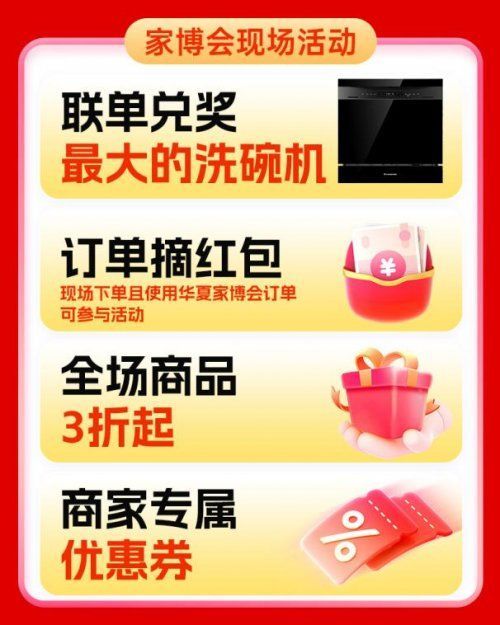 面向消费者的互动活动亮点纷呈。华夏家博会郑州站这回可是大手笔,准备了超多福利等你来拿!联单兑奖、订单摘红包、全场商品3折起、商家专属优惠券等多重活动,最高可抽4999元现金大奖,各种品牌家电等你来赢!这不仅仅是一场家装优惠盛宴,更是一次满载而归的家电福利大派送!