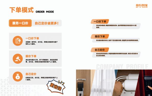 奇兵到家首创“商家定价、师傅接单”反向撮合机制,提供“一口价下单 + 报价下单 + 自己定价”三种下单模式,灵活适配不同预算与商家需求:一口价让预算透明可控,报价模式择优选择师傅,自己定价则赋予商家定价自主权,轻松实现成本自控。同时,平台无需预存,按单结算,有效减轻了商家的现金流压力。数据显示,入驻商家平均节省售后成本达45%。