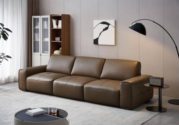 沙发零靠墙设计,小户型友好,功能位往前伸不伤墙面,沙发后方也不担心小物掉落。108°后倾靠包,混充恒压高弹海绵与微孔式高弹棉,饱满蓬松。面料选用进口头层牛皮,柔滑亲肤,柔韧耐磨,更经久耐用。