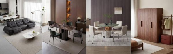 品质的进阶,源于对原材料的探索与创新,本次新品选用更多种类的皮料和石材、木材。沙发、软床选用了厚度更高的牛皮、纹理更细腻的自然摔纹皮;餐茶电台面强化了铂金钻、莫奈花园天然奢石的使用,并新增了多个原创花纹设计;实木产品方面,选用了胡桃木、白蜡木、橡木、樱桃木、乌金木等,以木材的天然肌理,为家注入温润质感。