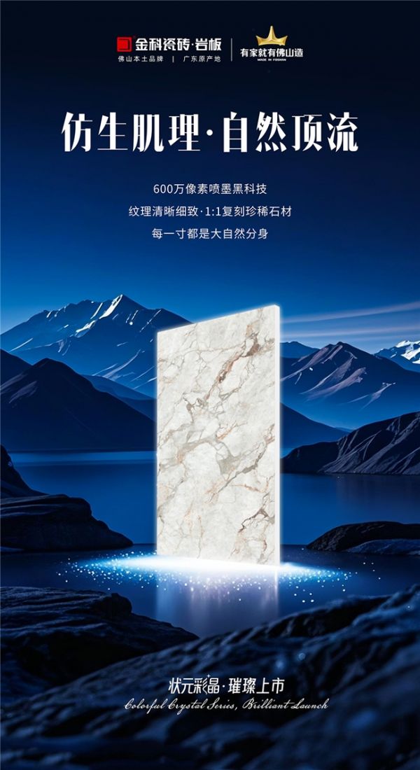 在这项聚焦原创、鼓励创新的行业盛会中,金科瓷砖凭借卓越的产品设计与技术实力,旗下“状元彩晶”系列脱颖而出,荣膺“年度原创产品大奖”。这不仅是对金科瓷砖持续深耕产品研发与美学创新的高度认可,更是“中国原创设计力量”在泛家居领域的生动彰显。
