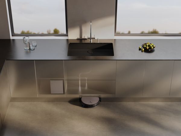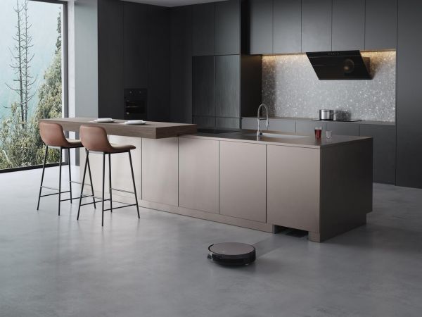 在 “主寝翱境” 展区,地宝 X 全嵌高定款嵌入餐边柜中,16 厘米至薄机身与柜体面板齐平,一体式电动舱门闭合后,地面仅呈现连贯的木纹质感,没有任何突兀的设备轮廓,这让清洁设备不再是需要额外规划的“外来物”,而是“自然融入”空间肌理的组成部分,实现了地面“零外露”的纯粹视觉。