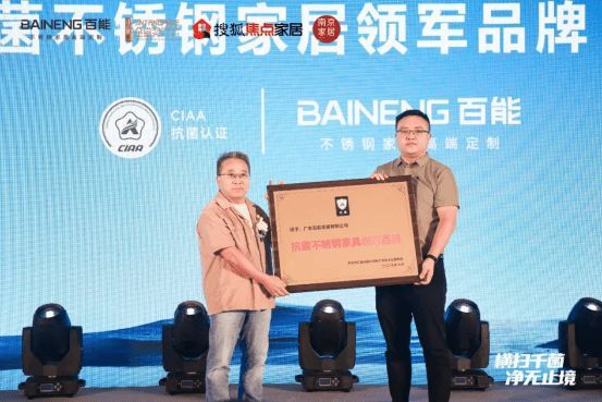百能的技术突破,赢得了行业与权威机构的高度认可。CIAA抗菌协会授予百能家居“抗菌不锈钢家居领军品牌”称号,这一荣誉是对百能抗菌历程的高度认可。作为行业抗菌技术的开拓者,百能不仅是不锈钢家居行业首家获CIAA 抗菌认证及抗菌标志产品的企业,此前亦获得广东省橱柜商会与 CIAA 联合颁发的“家用柜类行业抗菌先行者”荣誉证书,持续引领行业健康发展。