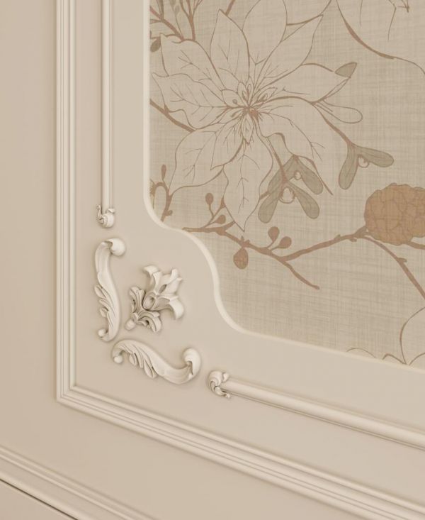 鸢尾精雕角花是浪漫的徽章。它以法国国花鸢尾为创作蓝本,运用多层次精雕工艺,极致刻画其优雅舒展的姿态与细腻的纹理脉络。每一处转折都棱角分明,每一片花瓣都栩栩如生。表面施以环保水性漆,呈现出细腻柔和的触感与哑光质感,这枚精致的角花,不仅是空间的点睛装饰,更是一件微缩的艺术品,悄然嵌入现代家居的肌理之中。