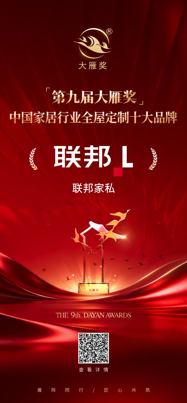 喜报!联邦家私荣膺「第九届大雁奖·中国家居行业全屋定制十大品牌」奖项