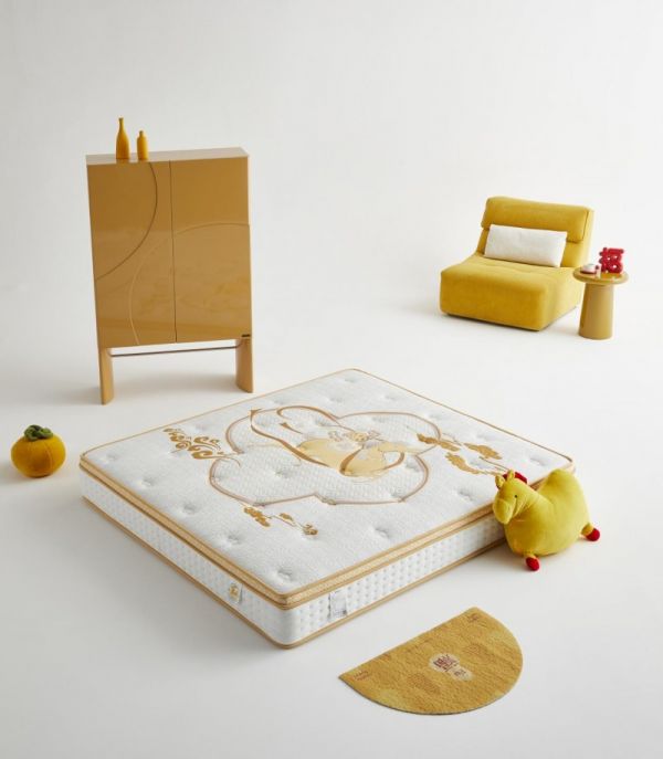 在外观上,新品床垫将文化祝福与舒适体验巧妙结合。床垫表面以海棠花窗为外框设计,内嵌奔跑瑞马元素,寓意“金马踏云,纳福招财”。搭配葫芦纹、祥云等传统吉祥纹样,传递出福禄安康的美好寓意。睡在这张床垫上,让日子柔软温馨,财运源源而来。