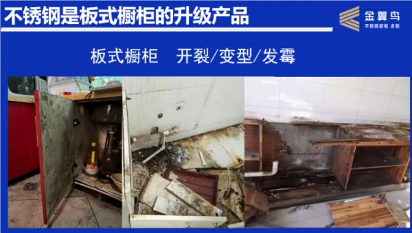 金翼鸟不锈钢橱柜就自行投产了不锈钢橱柜行业第一条流水线喷粉烤漆门板生产线。把不锈钢橱柜的天价给打下来了。一般的商品房厨房有4米地柜,2米吊柜,做不锈钢橱柜终端成交价格大概在2.5万左右,板式品牌橱柜大概1到1.5万。而十年前同样一套板式品牌橱柜要3万左右。10年前买板式橱柜的业主,今天旧厨房改造将会首选不锈钢材质。因为价格和十年前差不多,产品确实是升级了。