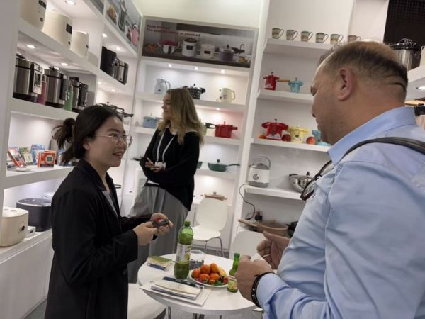 开展首日,双喜电器展位接待多批国际客户,交流成果显著。来自土耳其的客户对双喜电器小规格微压锅产品表现出浓厚兴趣,进行了详细的技术与商务问询,并约定于次日带专业团队就合作细节展开深度洽谈。马来西亚老客户则提出了适配当地市场烹饪习惯的新款压力锅系列定制化需求。针对该需求,双喜电器将加速内部研发评估与产品开发进程,积极响应海外市场的差异化应用需求。
