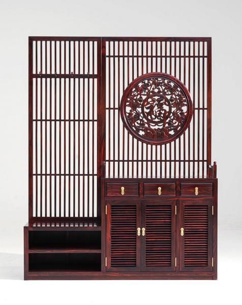 古森红木《福禄玄关柜》柜体雕刻福禄纹样,与玄关纳福挡煞的风水功能相得益彰