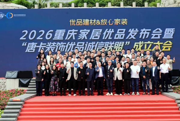 2026年3月13日,由市商务委指导,重庆市定制家居协会、重庆建筑装饰协会、重庆家电服务企业联合会携手唐卡装饰集团主办的“购在中国 爱尚重庆”重庆家居优品发布会暨唐卡装饰优品诚信联盟成立大会,在观音桥步行街隆重启幕。本次活动以“优品建材 放心家装”为主题,荟聚国内外一线家居建材品牌,发布《家居优品甄选白皮书》,共鉴这场以“优品筑家・诚信护航”为宗旨的行业盛会,助力重庆家居消费市场提质升级,为重庆国际消费中心城市建设注入家居产业新动能。