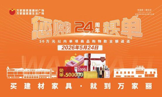 据悉,2026年5月24日,万家丽“您购物·我买单—24周年庆”盛典将盛大举行,届时50万元以内单项商品全额免单的超级大奖又将花落谁家,让我们共同期待。买建材家具,就到万家丽;享品质生活,尽在宇宙中心。这里不仅是购物的天堂,文化的圣殿,更是我们一生至少要来一次的传奇坐标!