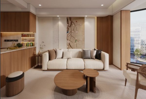木材+石材:木的温润与石的冷冽形成对比,常用于背景墙、岛台设计。