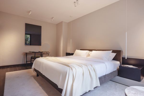 在居所的入口处摆放的是Wallis储物柜,在其石英岩顶部上放满了装裱起来的相片,琳琅满目的照片中,尽是弥足珍贵的旅行时光和难以忘怀的回忆瞬间;阁楼里,金属线条结构与漆面隔板组成的Hardy书柜上,存放着林林总总的书籍著作。由量身定制的织物面料制成的 Oscar沙发将你舒适地包裹其中,此时正是你享受放松身心的晚间时刻,观看着或梦幻或怀旧的电影。在静谧的夜晚和清晨里,Tuyo床是你最佳的伴侣,它那带有衬垫的超大床头板像极了避风港,让人安心停泊,高枕无忧;环绕在旁的Johnny床头柜的顶部皮盖上,放着一盏常亮灯,总在未眠的夜里陪伴着你。卧室里,有着优美细腻针脚的Jeanette扶手椅收纳了不少你在工作日换下的衣服。周六晚上的朋友聚会和周日与家人的午餐会,有软垫覆盖的Emilia椅子一直迎来送往;而雕塑般的Plinto桌子则是存放茶余饭后留下的咖啡杯的绝妙之处。